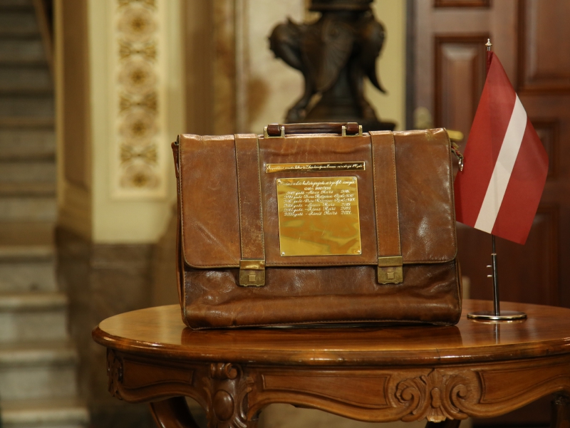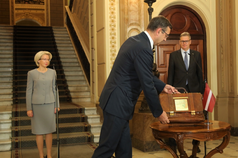 Foto - Ministrs iesniedz #Budžets2021 porfeli Saeimā
