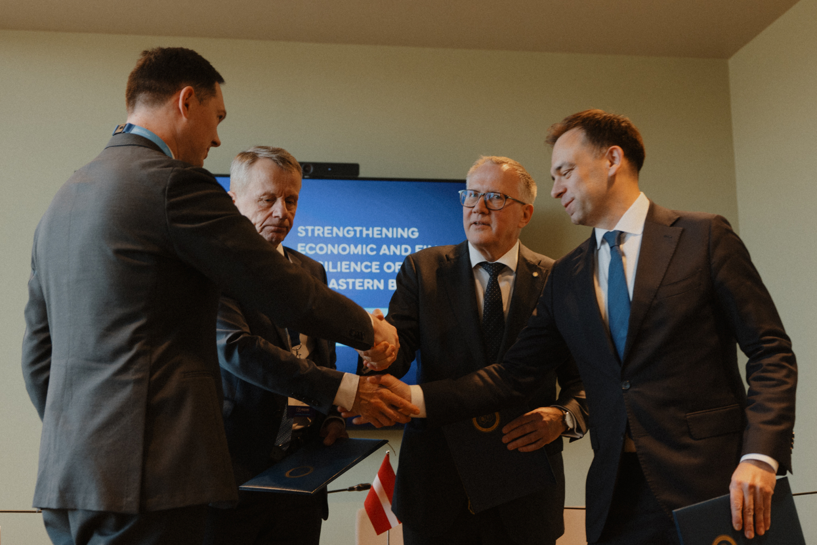Lietuvas finanšu ministrs Kristupas Vaitiekūnas, Polijas finanšu un ekonomikas ministrs Andrzej Domański, Igaunijas finanšu ministrs Jürgen Ligi un Latvijas finanšu ministrs Arvils Ašeradens šodien, 24. aprīlī, Viļņā parakstīja kopīgu deklarāciju par ES austrumu robežas ekonomiskās un finanšu noturības stiprināšanu.